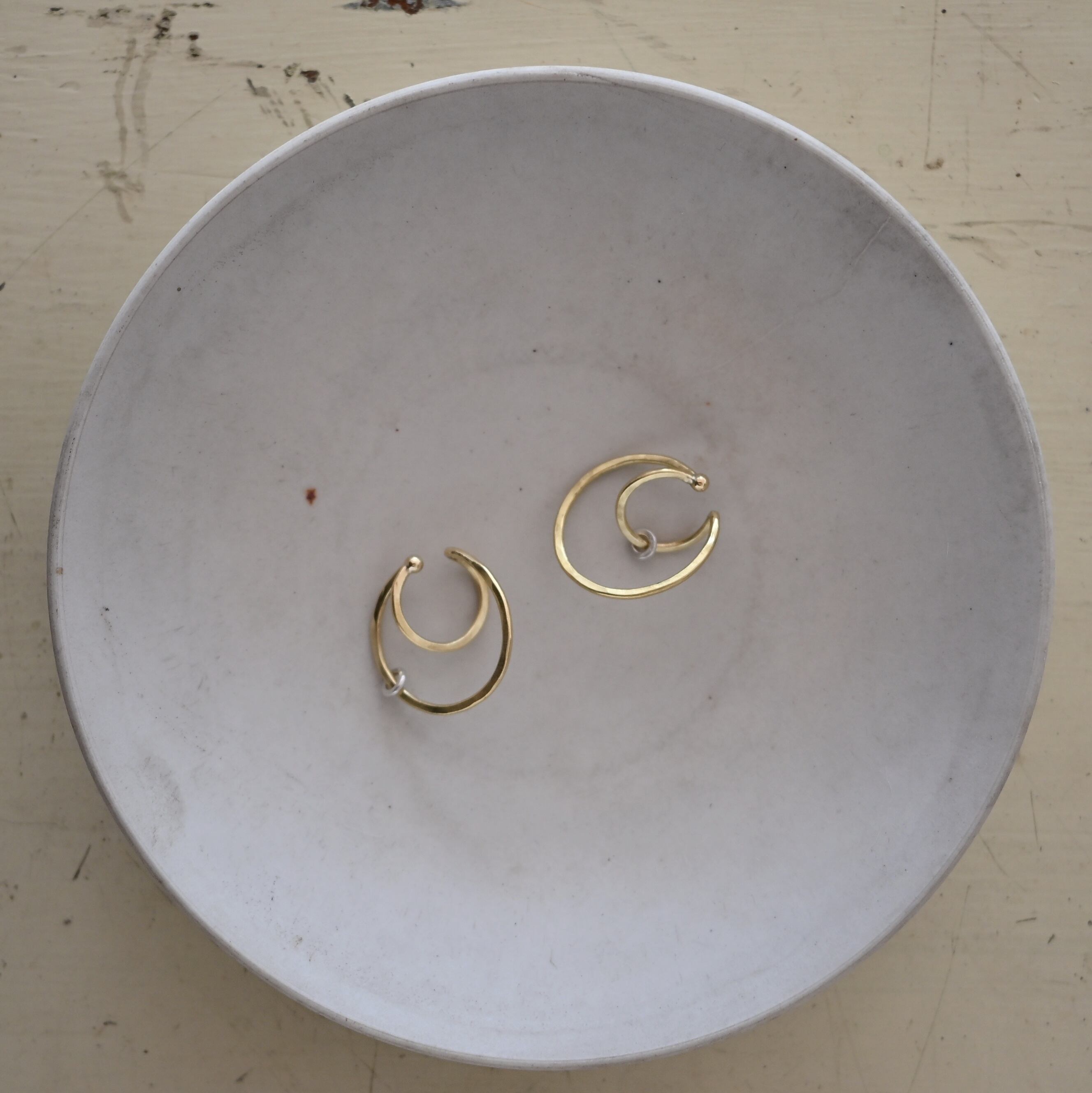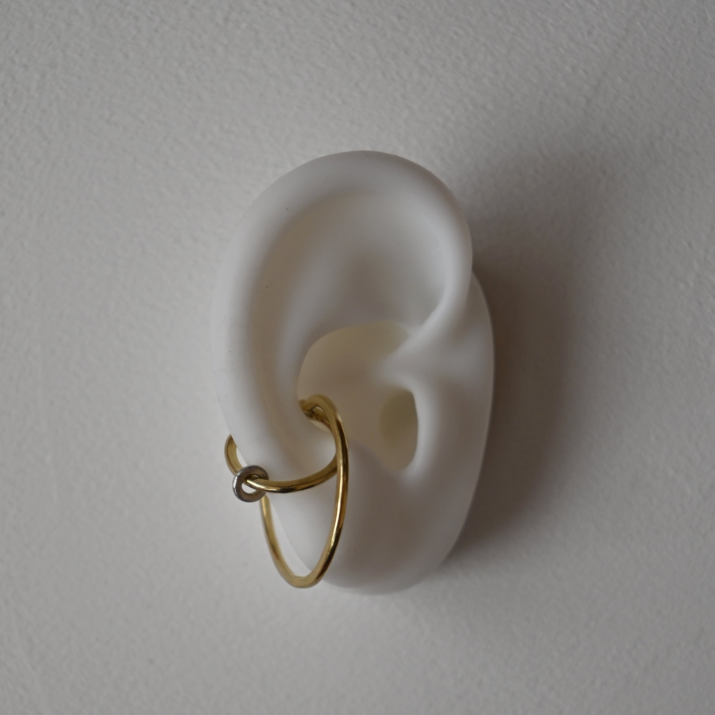 互い違いになった2つの輪が存在感のあるイヤカフです。